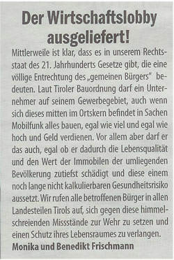 Lesen dieses Artikels der Tirol Tageszeitung 29.01.2009--- Bild anklicken ---