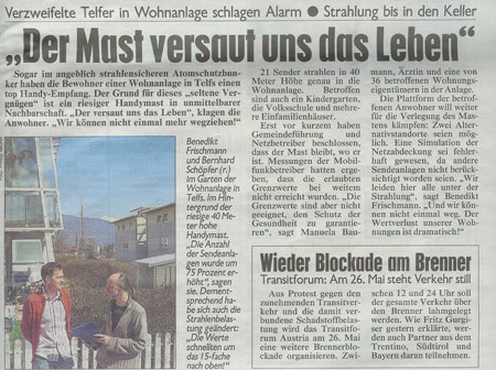 Lesen dieses Artikels der Tirol Tageszeitung 08.05.2008--- Bild anklicken ---